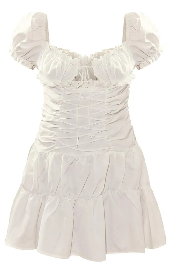 Have all eyes on you with this white frill lace up puff sleeve shift dress. This shift dress is brought to you in a white hue with frill detailing, a lace-up design and a puff sleeve style, what’s not to love? This shift dress is perfect for your next date-night. Just add chunky boots and gold accessories for a vibe like no other.
