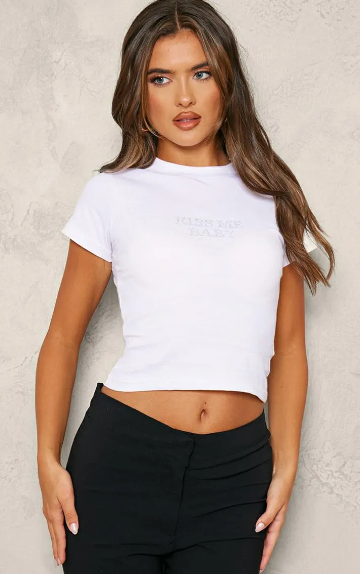 Amp up your off-duty style game with this white hot fix kiss me fitted top. Brought to you in a white hue material with a hot fix ‘Kiss Me’ design and short sleeves, what more could you want? Style this fitted top with capri’s, ballet flats and accessories for an everyday look that won’t go unnoticed.
