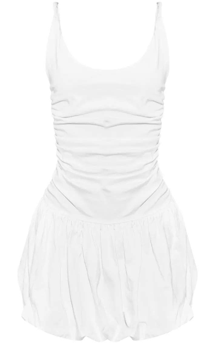 Stay in style this season with this white jersey twist strap puffball dress. Brought to you in a white jersey material with a twist strap detail and puffball skirt design, this dress is at the top of our wish list. Style with black loafers, a white headband and go-to accessories for a chic finish we’re obsessed with.