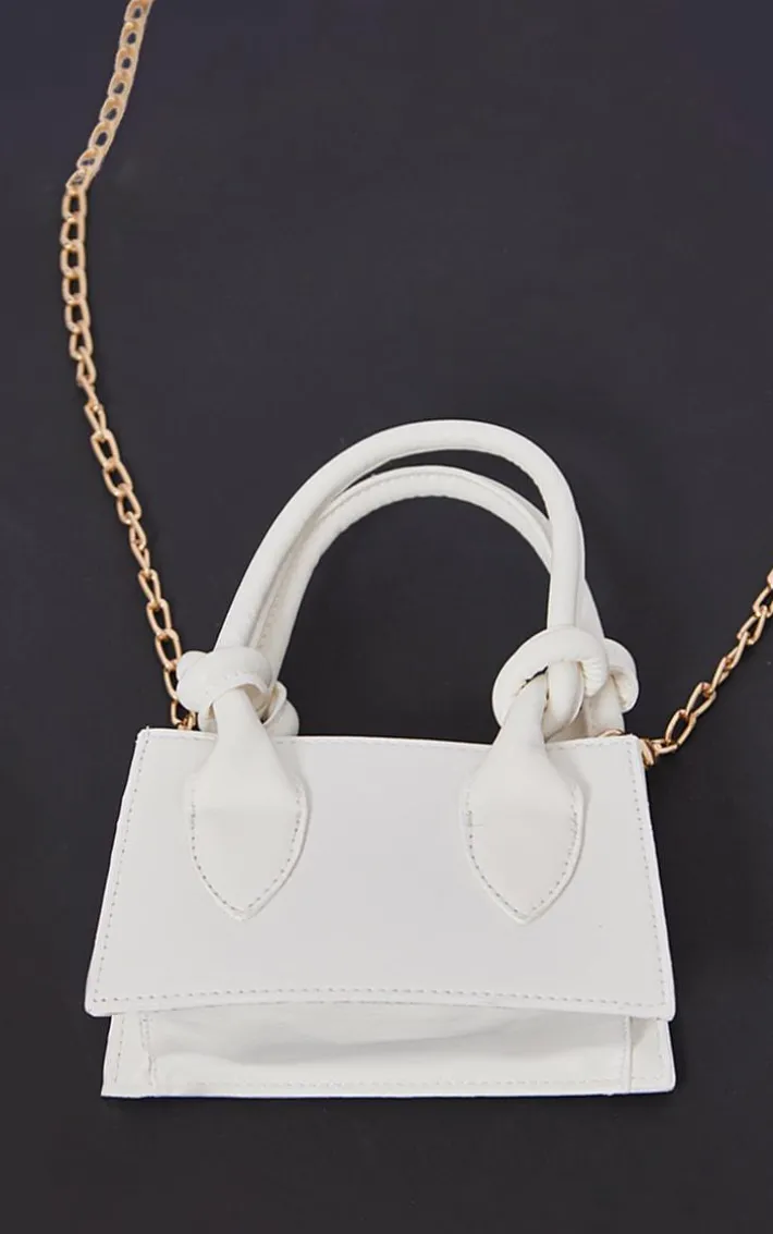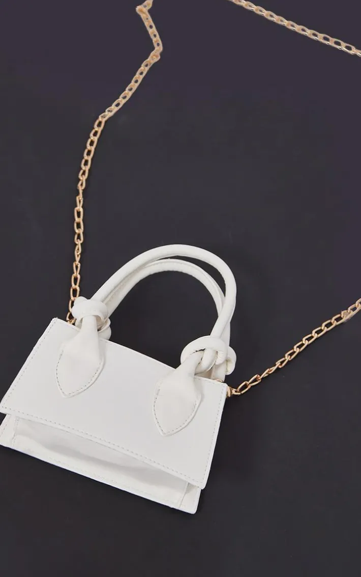 Your weekend look is not complete without this white knot handle mini grab bag. Brought to you in a white material with a knot handle design and long chain, you’ll be adding this mini bag straight to your basket. Just add to your outfit of the day for the perfect finishing touch.