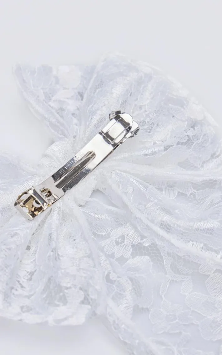 Add a touch of luxe to any look with this white lace bow hair clip. Brought to you in a white lace material with a bow design that is sure to have you tapping into your feminine side this season. What are you waiting for? Shop the look and pair with your outfit of the day to turn heads for all the right reasons.