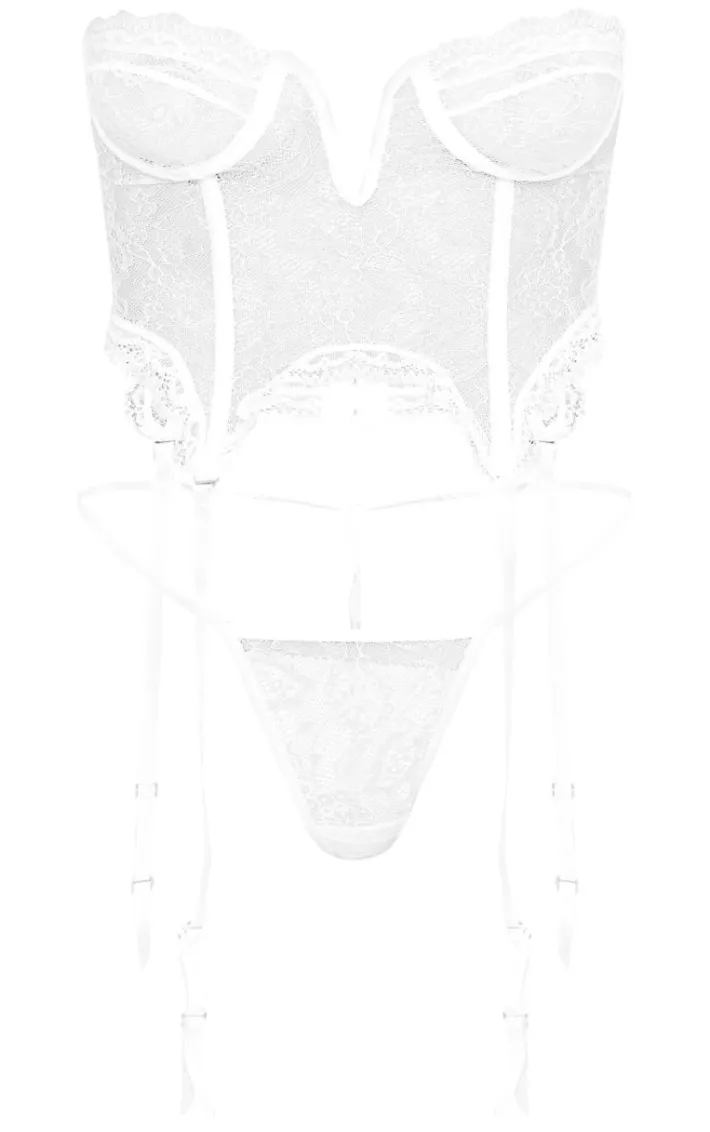 This corset is at the top of our hit-list right now. Featuring a white lace material with a frill detail and underwired bust, team this with wide leg pants and strappy mules for a look we’re crushing on.