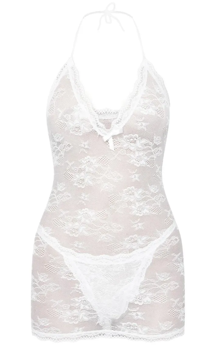 This white lace slip dress and thong lingerie set is a must have for your collection. Brought to you in a crisp white shade with a lace material, how can you resist? The slip dress and thong combo will have you feeling your most confident self. Why not throw on a satin robe to complete the look? It’s a yes from us.