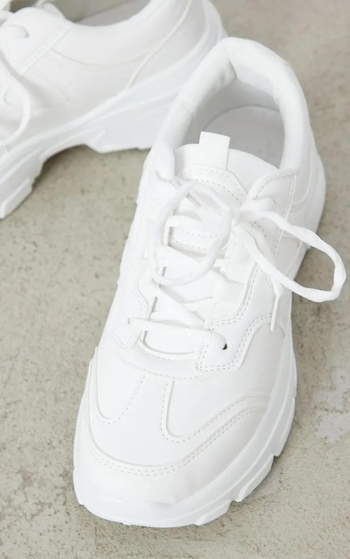 Pair your outfit of the day with these white lace up chunky sole sneakers and amp up your style game. With a white hue material and a chunky sole, these sneakers are the ultimate styling staple. No matter what your occasion is doll, these sneakers are a definite must-have to complete any everyday look.