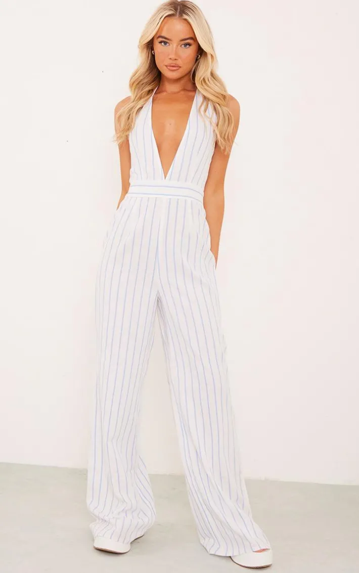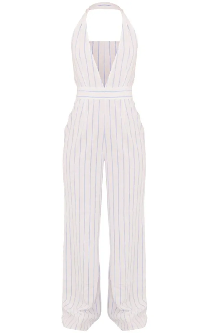Channel all the dreamy vibes with this white linen look pinstripe plunge halter jumpsuit. This jumpsuit is brought to you in a white linen look pinstripe material with a plunge neckline and a halterneck style, what’s not to love about this? From your weekend styling to you everyday looks, this jumpsuit is calling your name. Pair with your box-fresh kicks and gold accessories for a flawless finish.