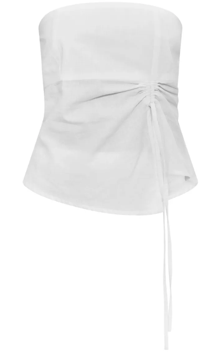 Go for all the effortlessly chic vibes this season with this white linen look ruched longline bandeau top, we’re seriously obsessed. This top features a white linen look material with ruched detailing and a longline design. Team with the matching skirt, platform sandals and your go to accessories for a flawless finish.