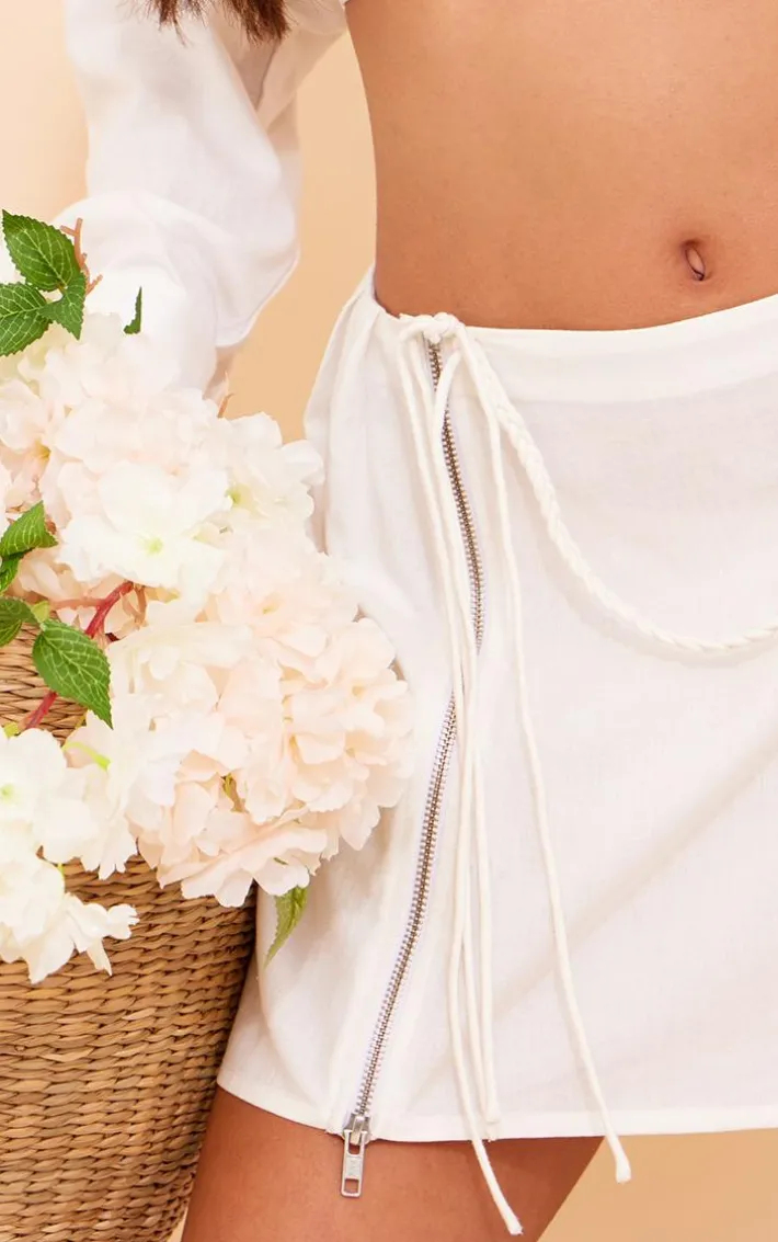 You won’t blend in with this white linen look zip split tie mini skirt. Brought to you in a white linen look material with a zip split tie detail, what’s not to love ? This mini skirt is all you need to feel seriously chic. Team with your fave accessories and a crop top for a look we are loving this season and beyond.