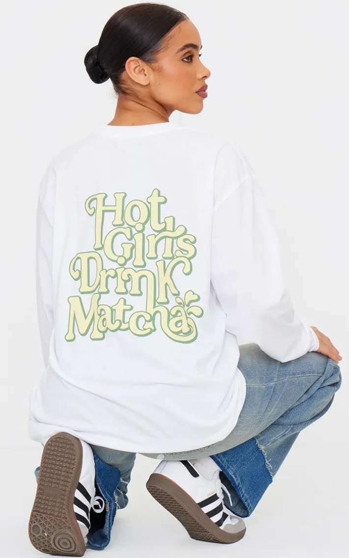 Your off-duty days are calling out for an update, and we have got you covered with this white matcha Graphic oversized long sleeve t shirt. Brought to you in a white material with a ‘Matcha’ Graphic across the back, what’s not to love? With its oversized fit, this long sleeve t shirt is perfect for those on the go days. Team with jeans and sneakers of your choice to feel edgy this season.