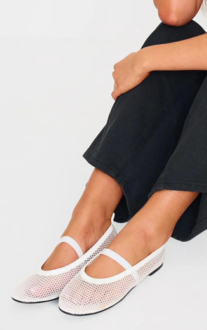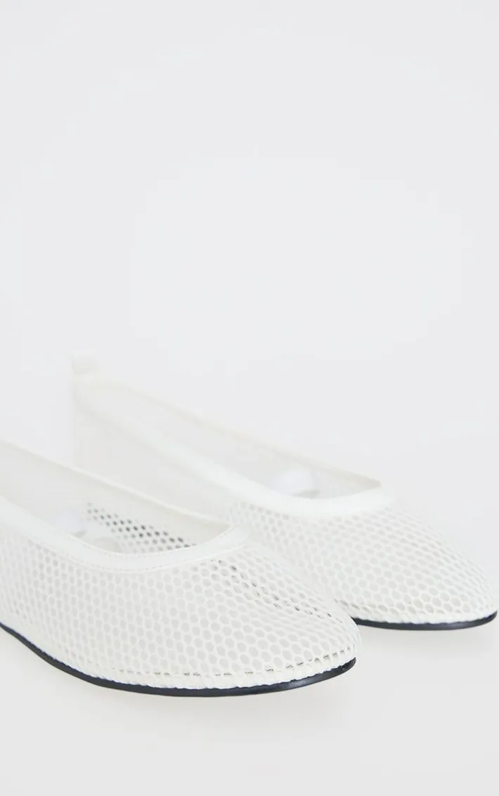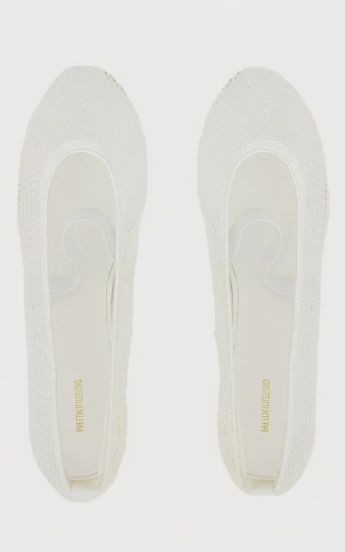 Nail major trends with these white mesh ballet flats. These ballet pumps are brought to you in a white mesh material with a strap design, what’s not to love? These ballet pumps are calling your name. Pair these with your outfit of the day for a look that will have all eyes on you.