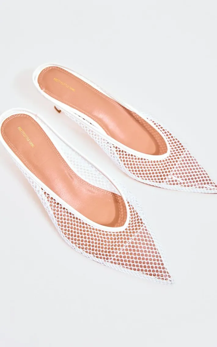 Look your most glam in these white mesh point toe kitten heel mule sandals. Brought to you in a white mesh material with a point toe design and kitten heel, these mule sandals are calling your name. How can you resist? Style with your outfit of the day for a look like no other this season.
