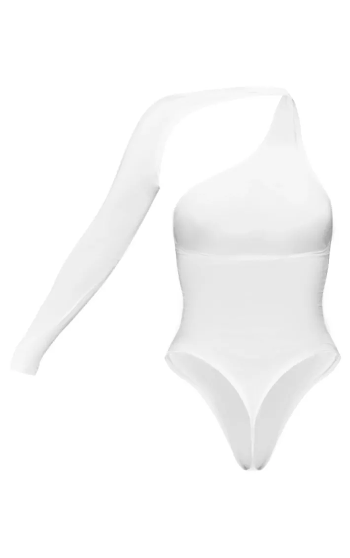 This bodysuit is perfect to elevate your weekend worthy look. Featuring a white material with a one shoulder design and popper fastenings. Style this with a white skirt and barely-there heels for a look we are loving.