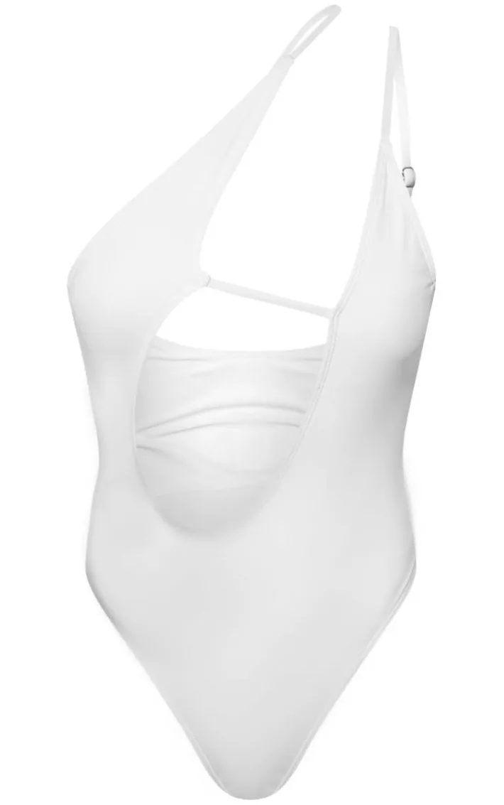Soak up the sun in style with this white one shoulder cut out swimsuit. This swimsuit is brought to you in a white material with a one shoulder design and a cut-out detial, how could you say no to this? This swimsuit is calling your name. Complete the look by styling this with your gold accessories and sunnies for a vibe like no other.