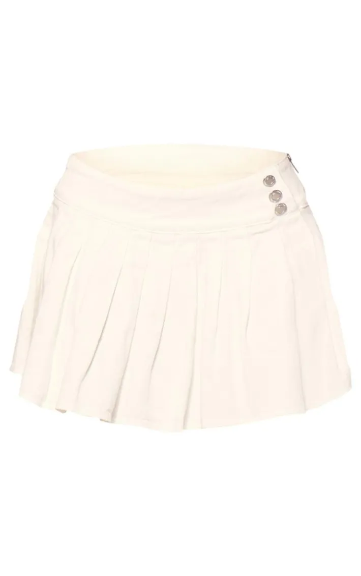 Make sure your weekend look stays on point in this white pleated denim mini skirt. Brought to you in a white denim material with a pleated design and a mini fit, what’s not to love? Style this denim skirt with a black lace top and heels for an effortlessly chic look that won’t go unnoticed. It’s official, we’re obsessed.