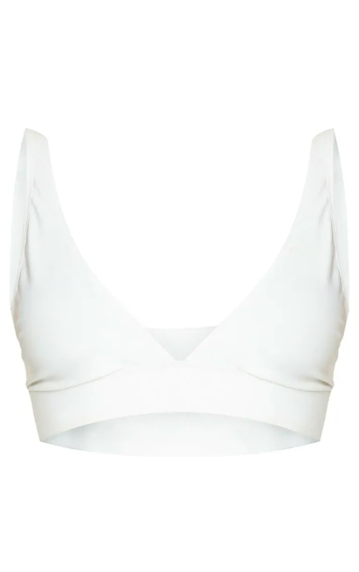 Keep your poolside vibe simple and chic in this staple bikini top. Featuring a white fabric with a plunge neckline and wide band detail, we’re in love. Style with high-waisted bikini bottoms and a pair of your fave sunnies for an instantly Insta-worthy look.