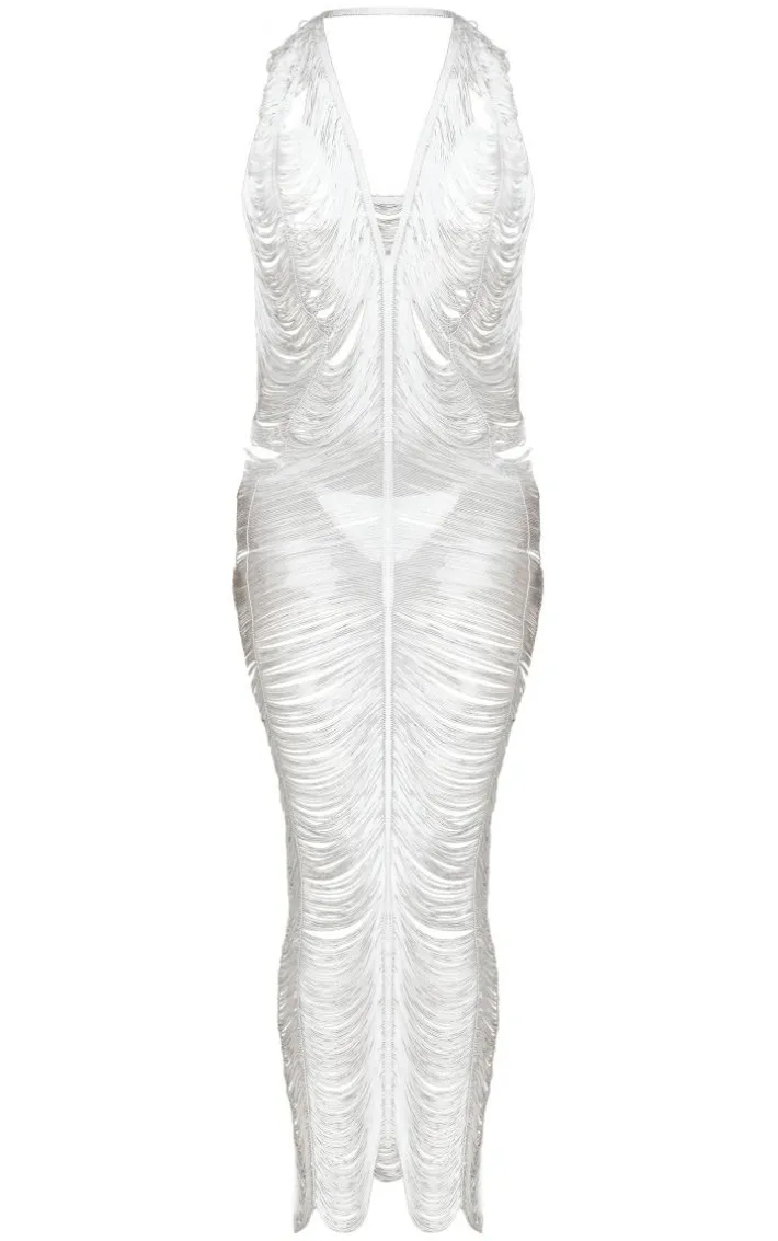 Channel the perfect poolside ‘fit with this white plunge tassel beach maxi dress. Brought to you in a white hue material with a plunging neckline, tassel detailing and a maxi length, what more could you ask for? We are loving this beach dress styled over a matching hue bikini for a look that is sure to become your new beach go-to. Just add flatform sandals and some statement accessories for a flawless finish.