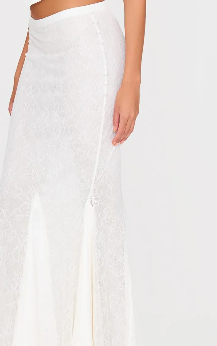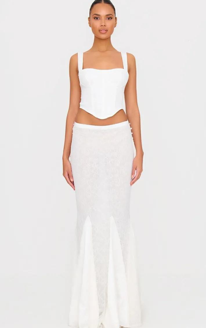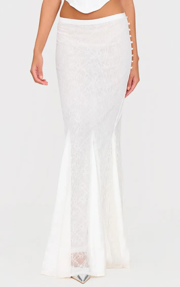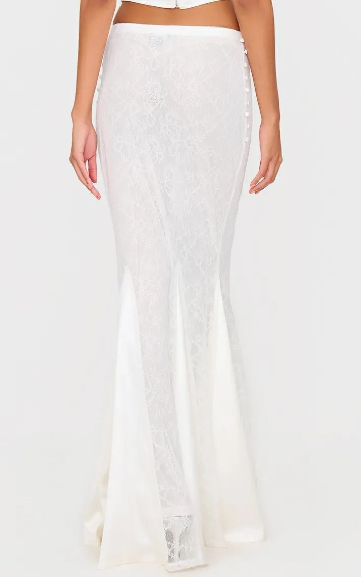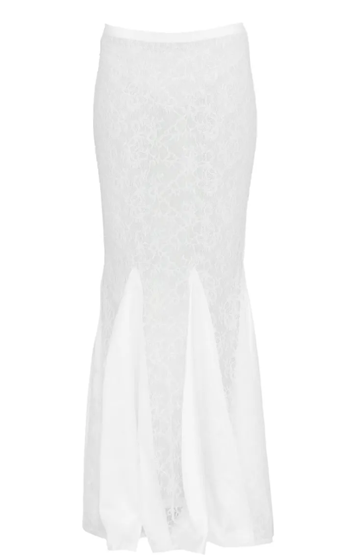 Make a statement whatever your weekend plans with this white premium lace satin hem detail fishtail maxi skirt. Brought to you in a crisp white shade, with a premium lace material, satin hem detail and flattering fishtail style, this maxi skirt won’t go unnoticed. Team with a pair of heels and simple accessories to stand out from the crowd.