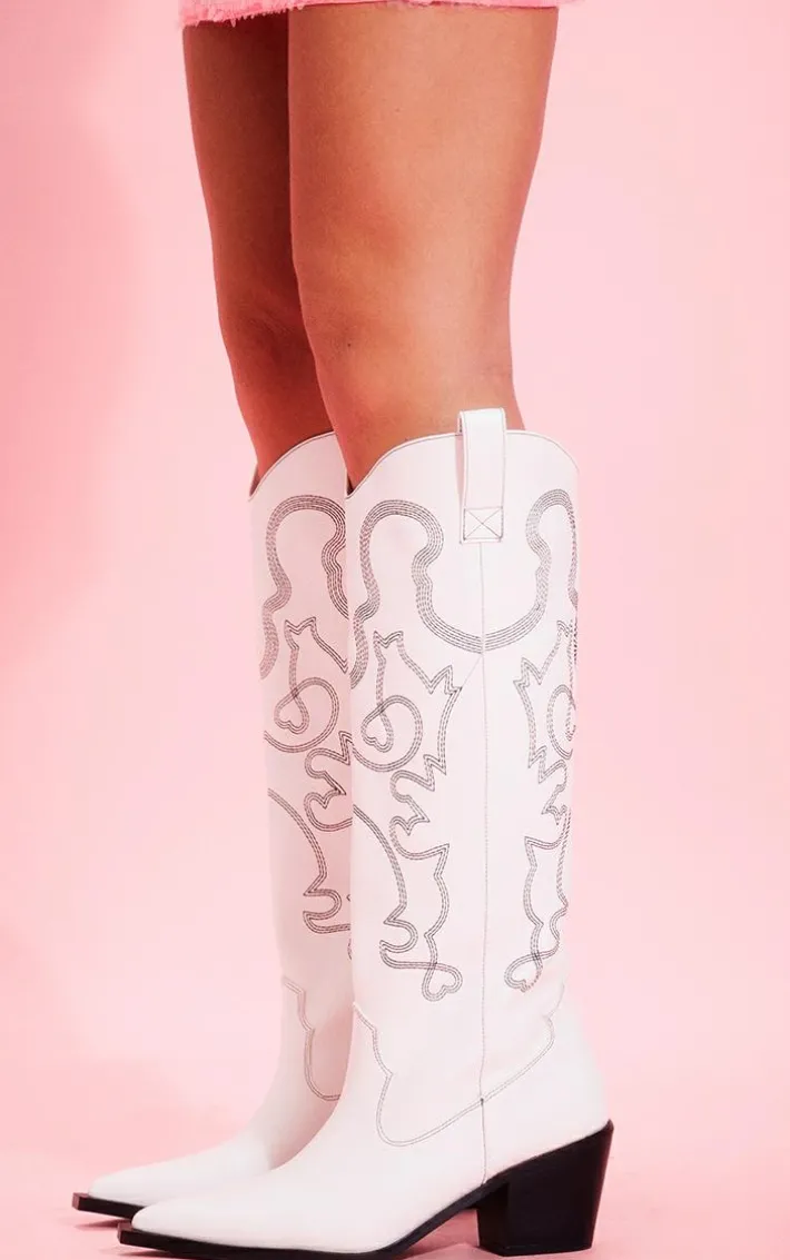 Nail major trends with these white PU point toe block heel knee high western boots. These boots are brought to you in a white PU material with a pointed toe, a block heel and a western knee-high style, what’s not to love? Complete the look by styling these boots with your outfit of the day for a flawless finish.