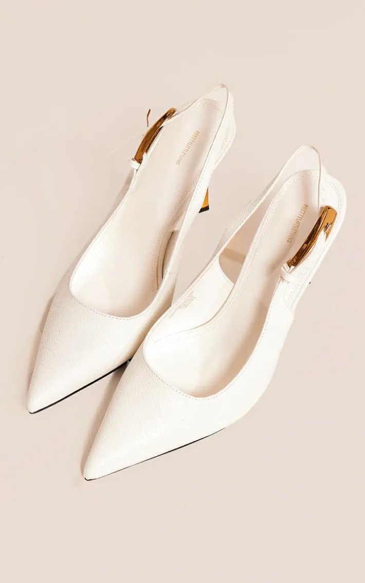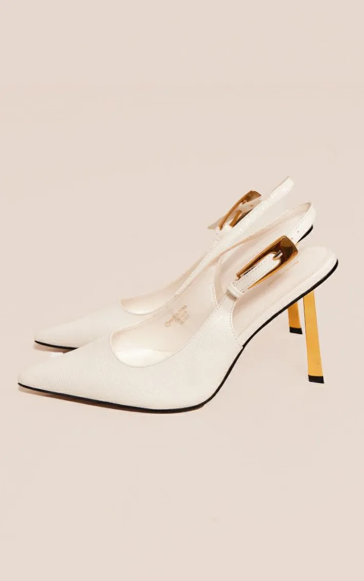 Bring all the glam vibes to your weekend wardrobe with this white PU point toe croc sling back high heeled court shoes, it is perfect for your next special occasion and beyond. These shoes feature a white croc PU material with a slingback design and a high heel, what more could you want? Pair these court shoes with your fave weekend fit for a look everyone will love.