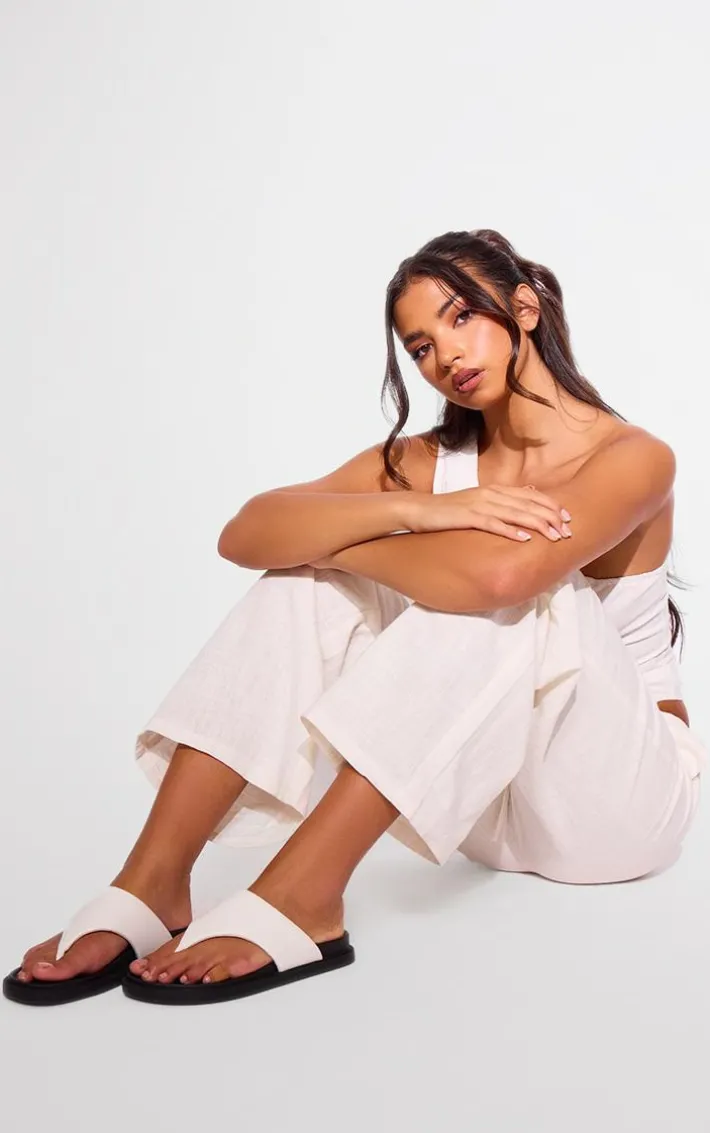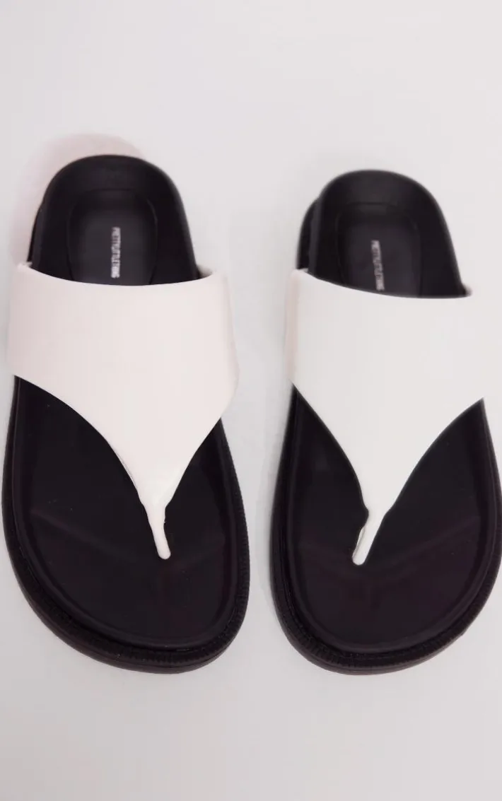 Your new season wardrobe wouldn’t be complete without these white PU round toe thing footbed flat sandals, we’re seriously in love. These sandals feature a white PU material with a thong design and a round toe, they’re perfect for those warm weather days and beyond. Style these PU sandals with your fave outfit of the day for a look everyone will want.