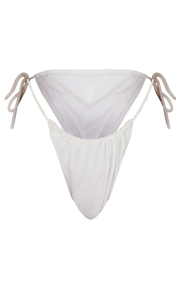 Hit refresh on your vacay wardrobe with these bikini bottoms. Featuring a white material with a rope tie fastening, what’s not to love? For the perfect poolside fit, pair these with the matching bikini top and statement accessories.