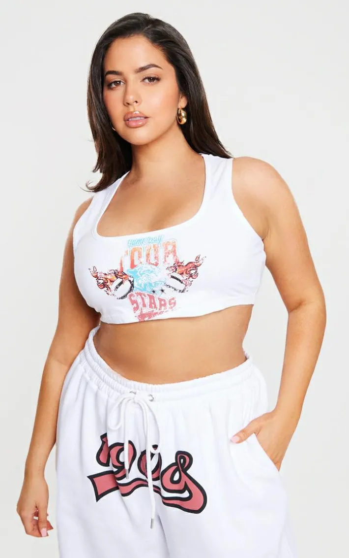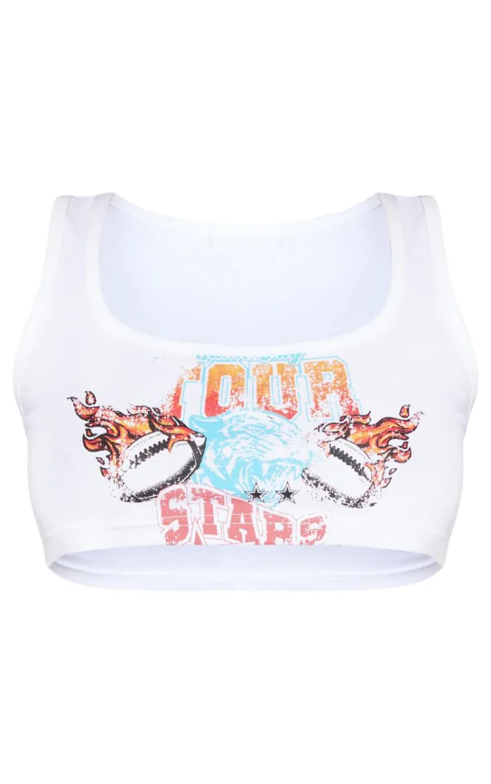 Keep your style game strong with this white scoop neck sleeveless crop. Made with a soft crop fabric, ultimate scoop neckline and Tour Stars vintage wash print, it’s top of our wish list. Pair with matching wide leg sweatpants and slip on shoes for a look that’s casual, comfy and effortlessly cool.