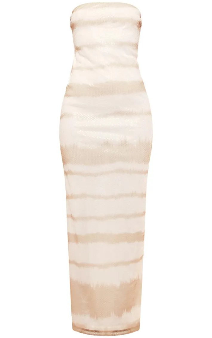 You are guaranteed to steal all the stares in this white sequin bandeau stripe detial midaxi dress. Brought to you in a white sequin material with stripe detail, a bandeau design and a midaxi length, how can you resist? Seriously chic and in a figure-flattering midaxi fit, this dress is perfect for your next occasion. Just add your heels and some glam accessories to take the look to a whole new level.