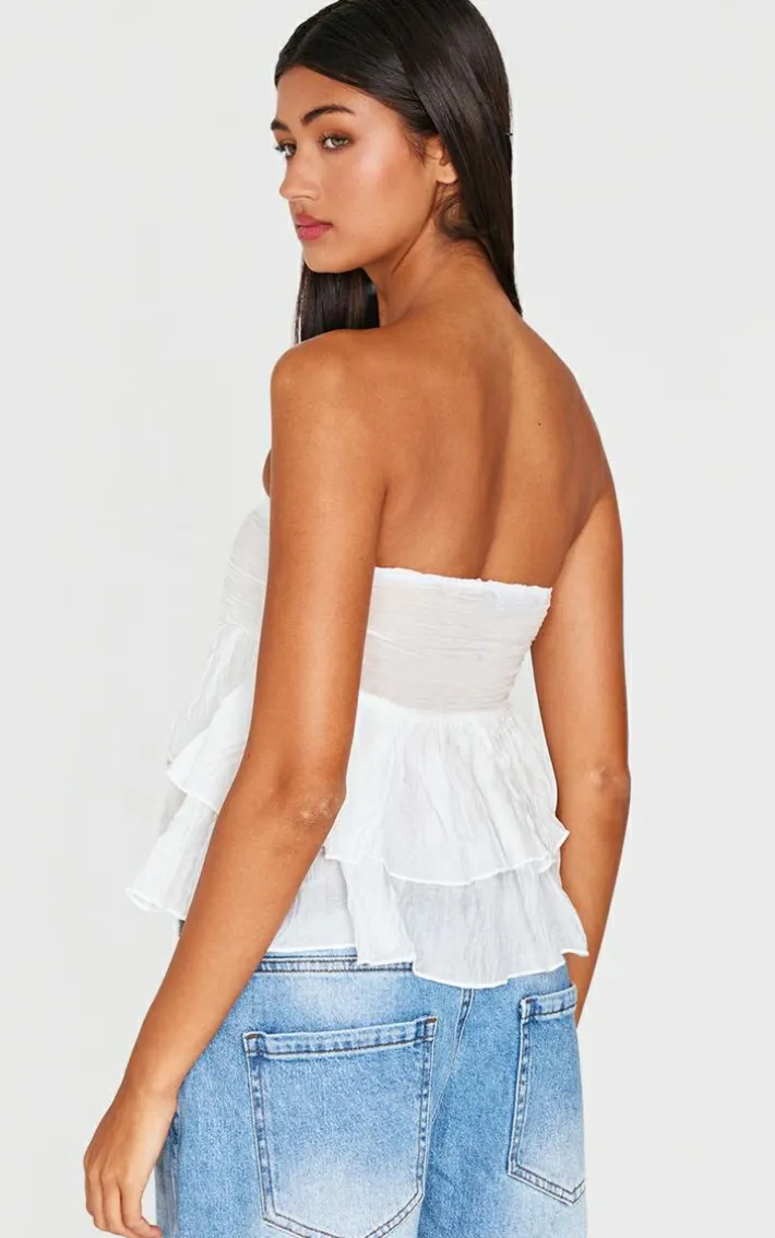 Be on trend this season with this white sheer cotton tiered crop top. Brought to you in a white sheer cotton material with a tiered design an a cropped length, you will bring all the edge to your outfit of the day. This crop top is perfect for your next brunch date. Team with a floaty midi skirt, sandals and accessories to be the center of attention wherever you step foot this season..