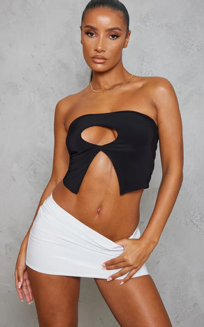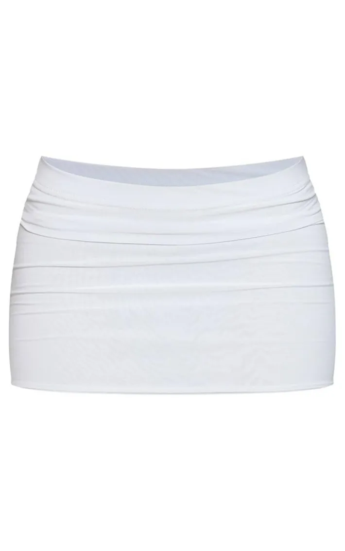 Steal all the stares in this mini skirt. Featuring a white slinky material with a low rise design and a micro mini fit. Wear this with a bardot top and your highest heels for a fierce look we can’t get enough of