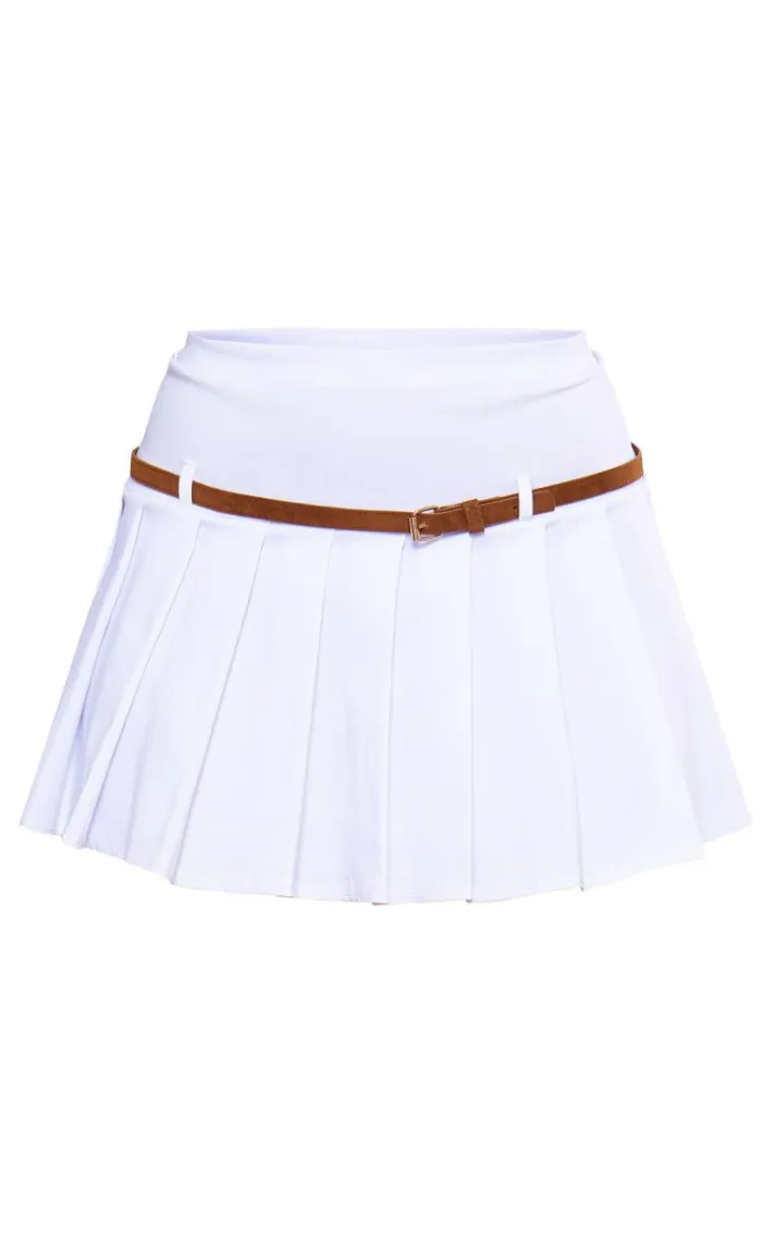 Add some seriously chic vibes to your new season wardrobe with this white stretch woven belt detail pleated mini skirt. Made using a white stretch woven material with pleat detailing and a belted design, this mini skirt is perfect for dressing up or down. Style this woven skirt with a shirt, clear heels and a shoulder bag for a look we just can’t get enough of.