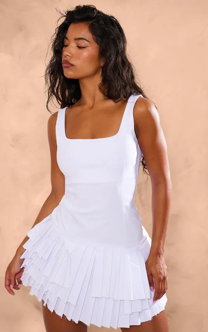 Get your glam on with this white stretch woven extreme pleated shift dress. Made from a white stretch woven material with an extreme pleated design, you’re sure to have all eyes on you. When the weekend calls so does this shift dress. So what are you waiting for? Shop the look and opt for a pair of heels and your go-to accessories to elevate the look even further. It’s a yes from us.