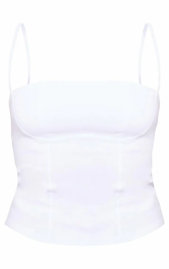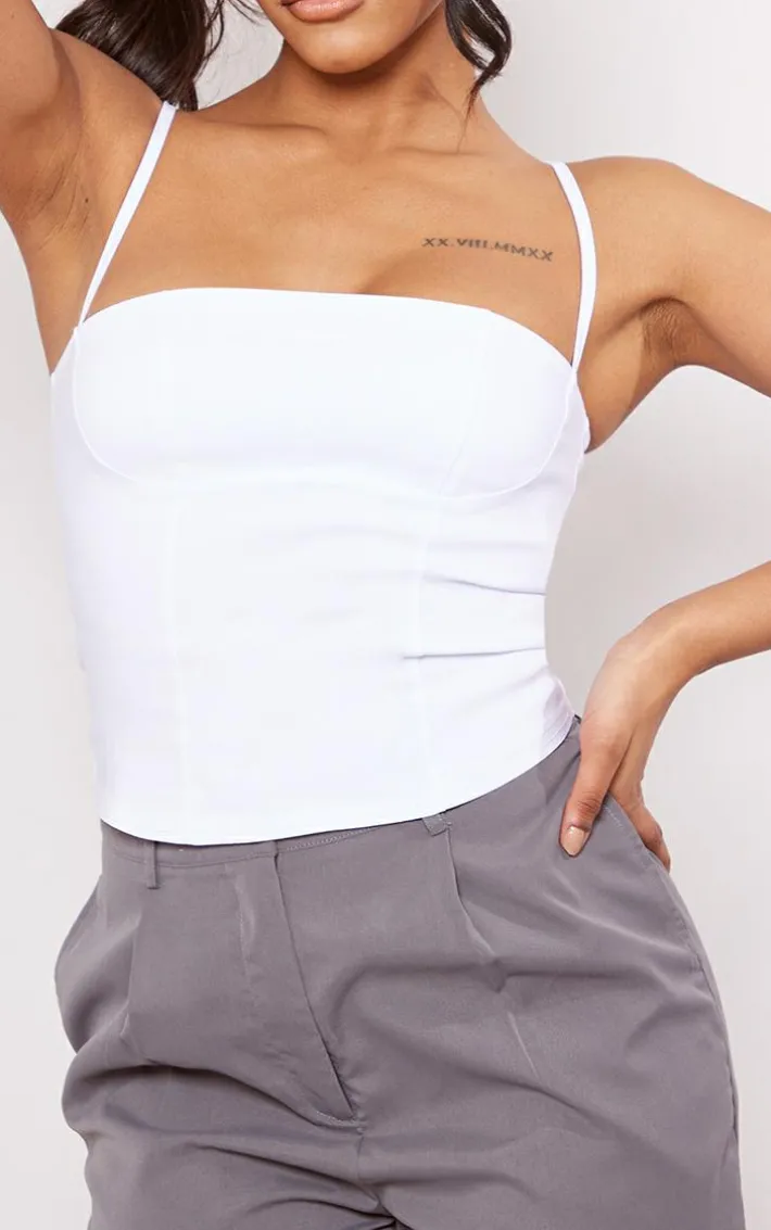 You can never have too many basics in your collection doll, that’s why this white stretch woven spaghetti strap bust detail crop top is for you. This top is made from a white stretch material with a woven design for a flattering fit we are loving. With a spaghetti strap and a bust detail, you won’t be able to resist. Team with some wide leg pants and some clear heels for an effortlessly chic look we are loving.