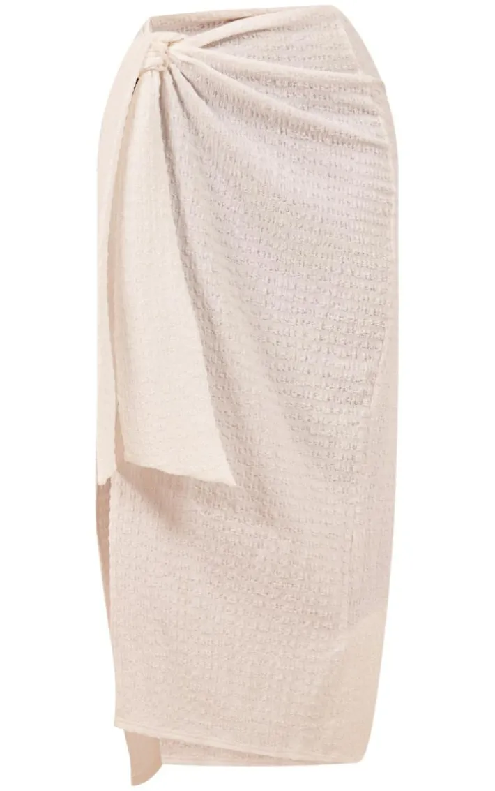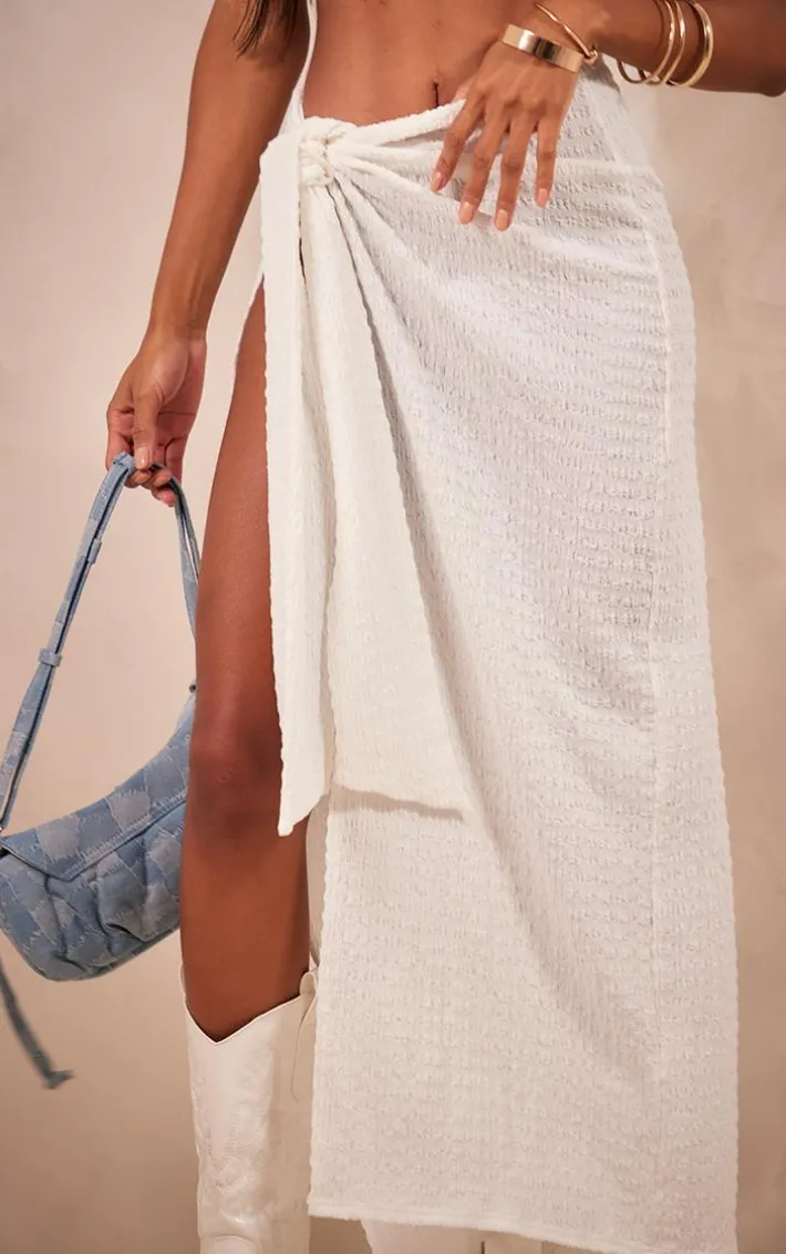 Channel all the glam vibes into your new season wardrobe with this white textured jersey wrap knot side midaxi skirt, it is a must-have for taking your look to a whole new level. Made with a white textured jersey material with a knot side design and a midaxi length, you’re sure to be obsessed. Style this midaxi skirt with a basic top, cowboy style boots and your fave accessories for a look that will get you noticed.