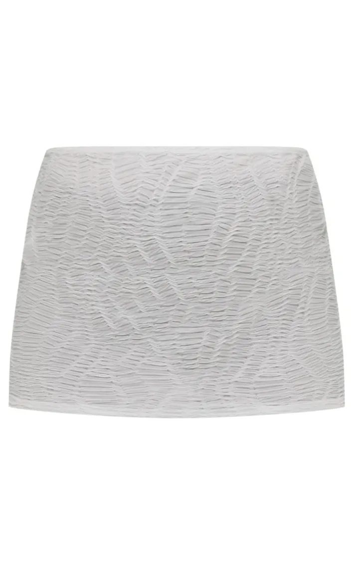 Switch up your vacay style game with this white textured low rise mini beach fit. Made from a white hue textured material with a low rise design and a mini fit, how can you not fall in love with this beach skirt ? Style with the matching bikini for an effortlessly chic beach look. Just add simple accessories and oversized shades for the perfect finishing touch.