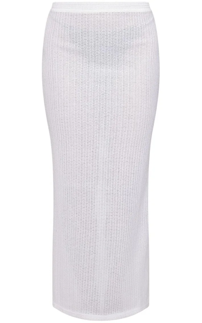 Take your new season wardrobe to the next level with this white textured rib maxi skirt, it is perfect for dressing up or down. This skirt features a white textured rib material with a maxi length and a figure-worshipping fit. Just add a matching hue top, sandals and a shoulder bag for a chic, off-duty look.