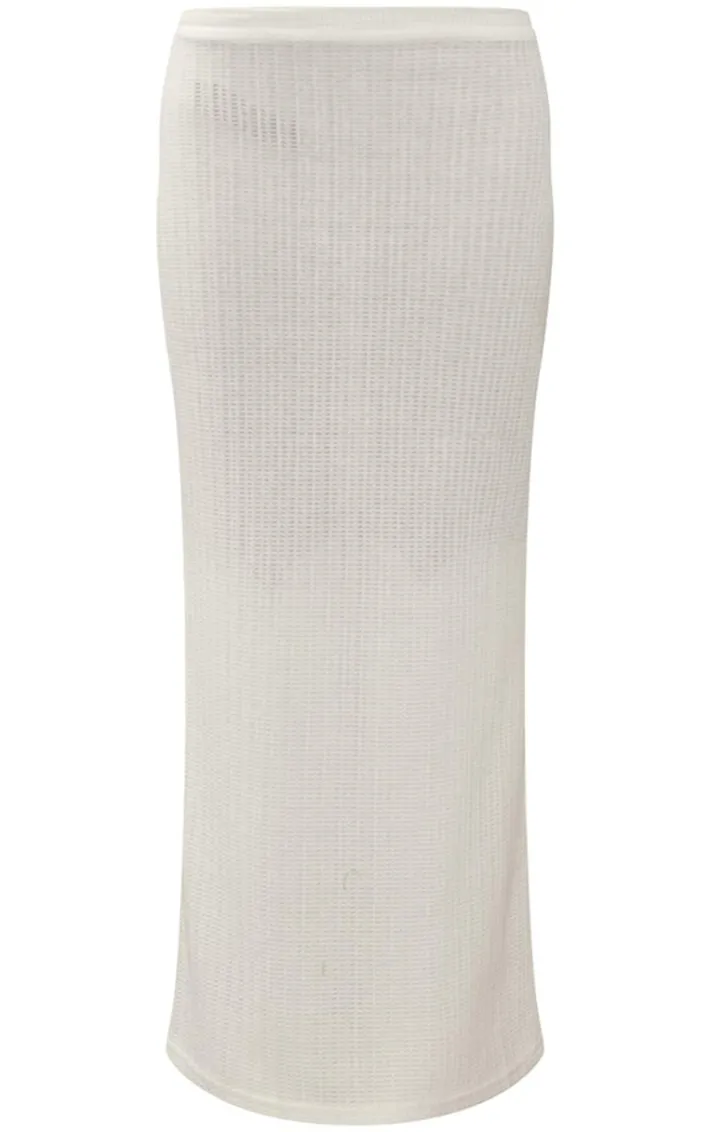 Found some last-minute weekend plans and need an unreal ‘fit? Then we have you covered with this styling staple, a white textured sheer rib low rise midi skirt. With a white textured sheer rib material with a low rise and a midi length, we’re obsessed. Work your styling techniques and add the matching vest and high heels for a weekend-worthy finish that will gain all the likes.