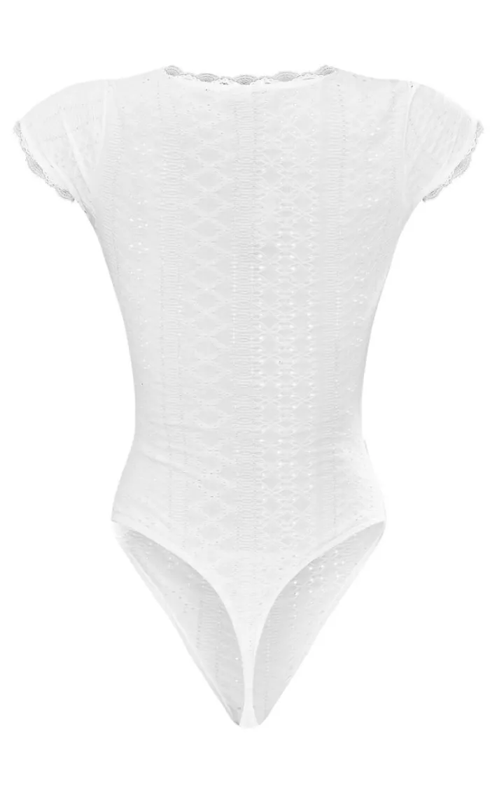 This white textured stretch lace trim short sleeve bodysuit is perfect for your new season wardrobe. Brought to you in a white textured stretch material with lace trim detailing and short sleeves, what’s not to love? Style this white bodysuit with a mini skirt, sandals and sunglasses for a look you will be reaching for again and again.