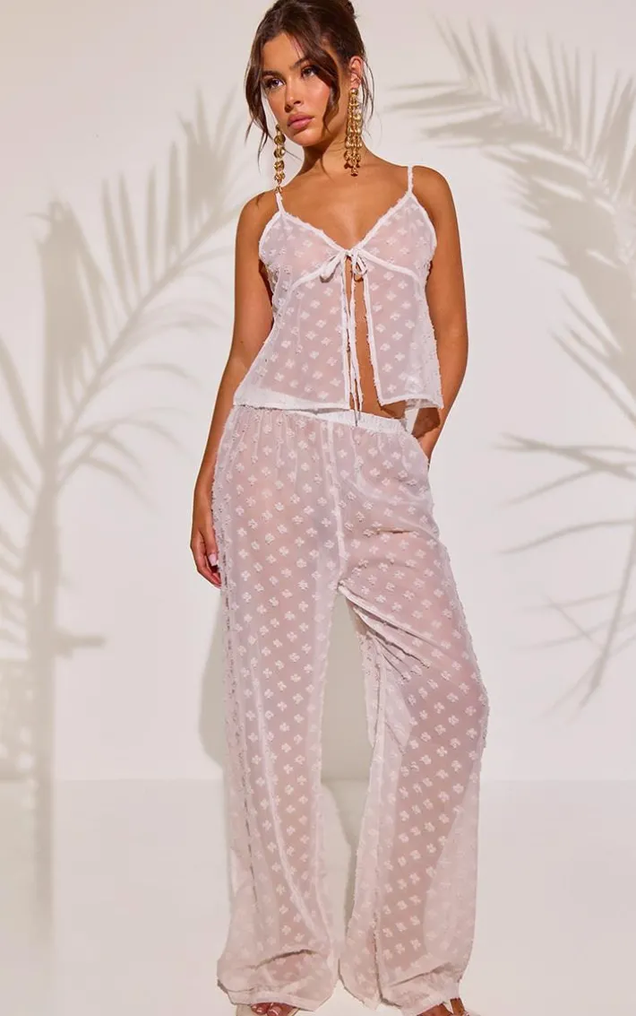 This white textured tie front beach top is all we can think about. Brought to you in a must-have white shade, with a textured material and tie front design, you’re going to be the best dressed for any occasion. Style with the matching pants, your fave sandals and some statement earrings to really make an impact.