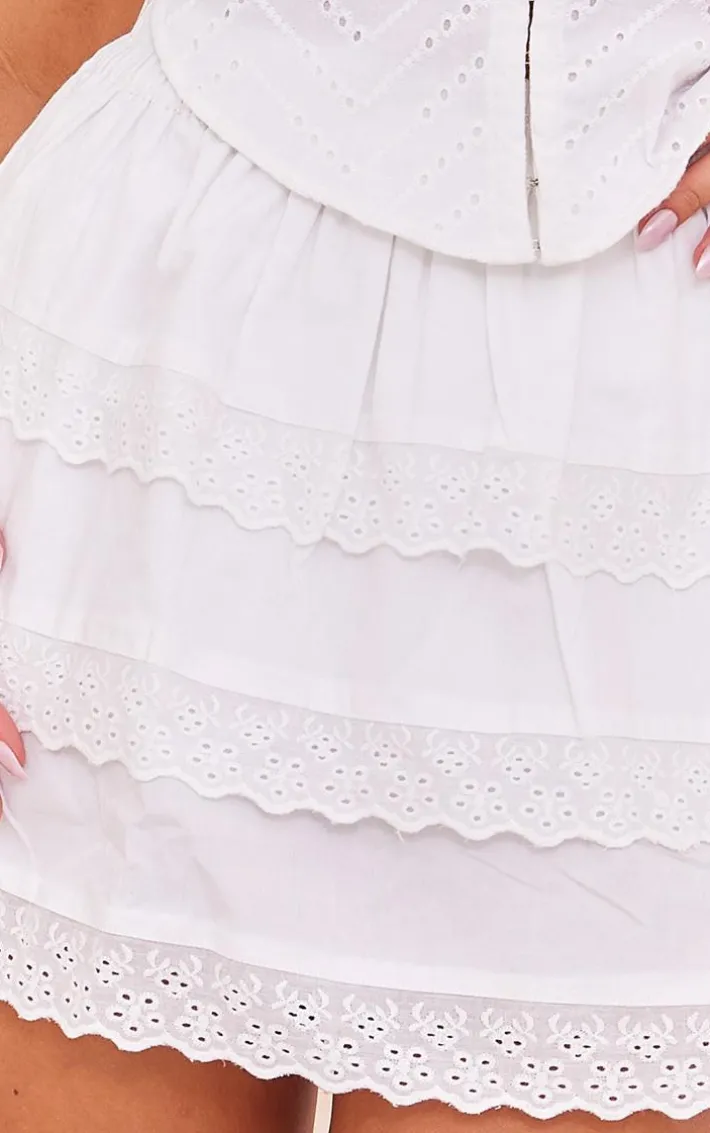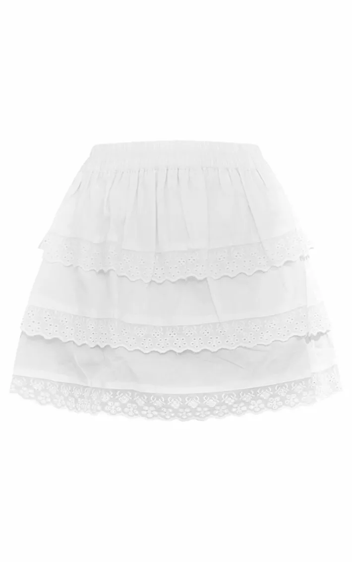 Keep it seriously chic with this white tiered frill mini skirt. Brought to you in a white tiered material with a frill design, what more could you want? This mini skirt has a frill detail bringing all the feminine vibes to your outfit of the day. Team this unreal skirt with a corset top and your fave accessories, you won’t regret it.