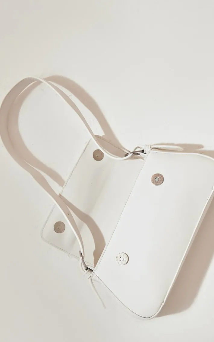 Your look simply isn’t complete without this white trapeze simple shoulder bag. Get ready to make this shoulder bag your new accessory style staple. Made from a white hue material with a thick handle and a button fastening, what’s not to love? This shoulder bag is sure to add the perfect finishing touch to any outfit.