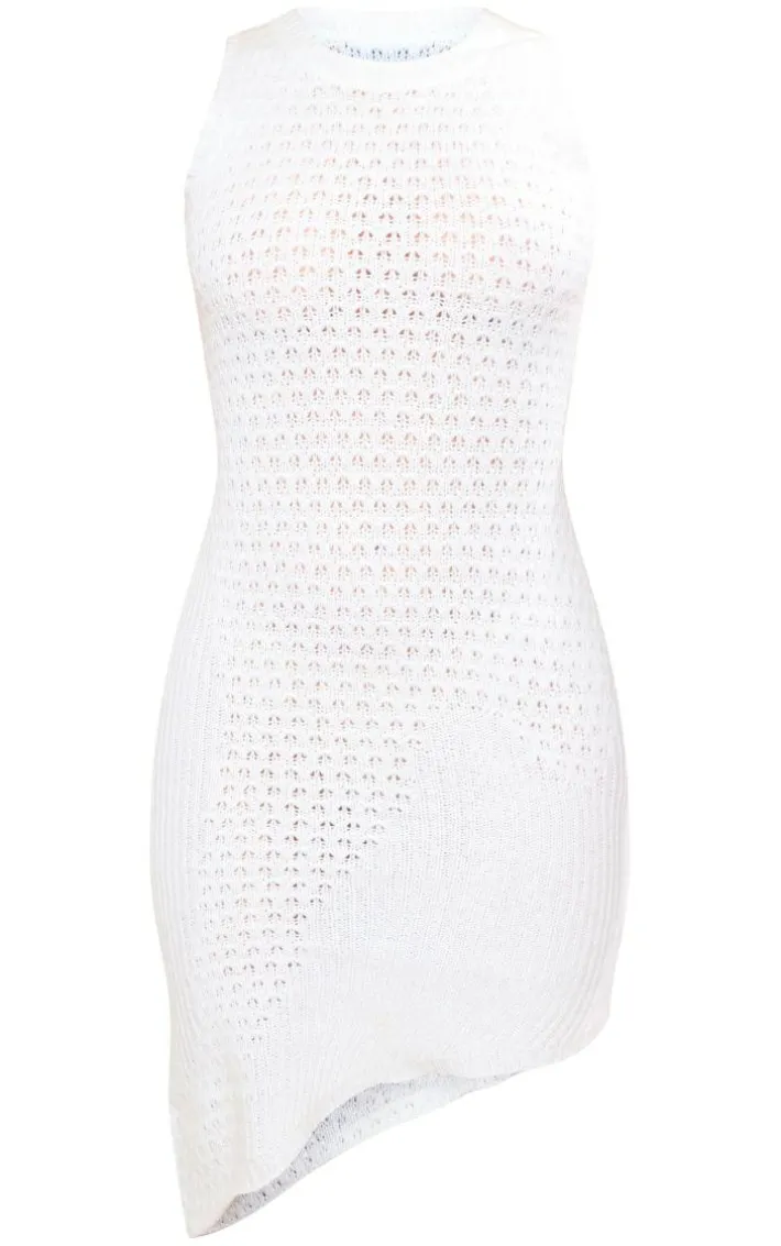 Switch up your style game this season and earn some extra points with this white tweed knitted asymmetric hem mini dress. It features a white tweed knitted material with an asymmetric hem and a sleeveless design, it is definitely calling your name. All you need to add is a faux leather jacket and chunky boots for a blogger-worthy finish.