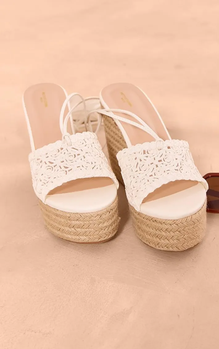 Take your look to a whole new level with these white wide fit PU round toe knotted platform lace up heeled wedges. These wedges are brought to you in a white PU material with a knotted design and a lace-up fastening, what’s not to love? These wedges are calling your name. Style these with your outfit of the day for a luxe feel.