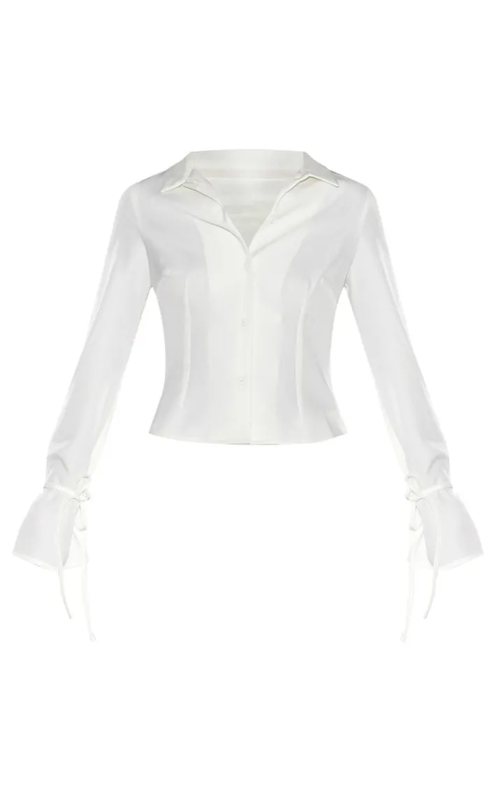 Be the best dressed for any occasion with this white woven tailored tie detail shirt. With a v neck collar, button down front and wrist tie feature, it’s the perfect shirt for dressing up or down, depending on what vibe you’re going for. Style with the white tailored skirt for a matchy-matchy look, and add a black handbag and slip on heels for a combo we’re crushing on.