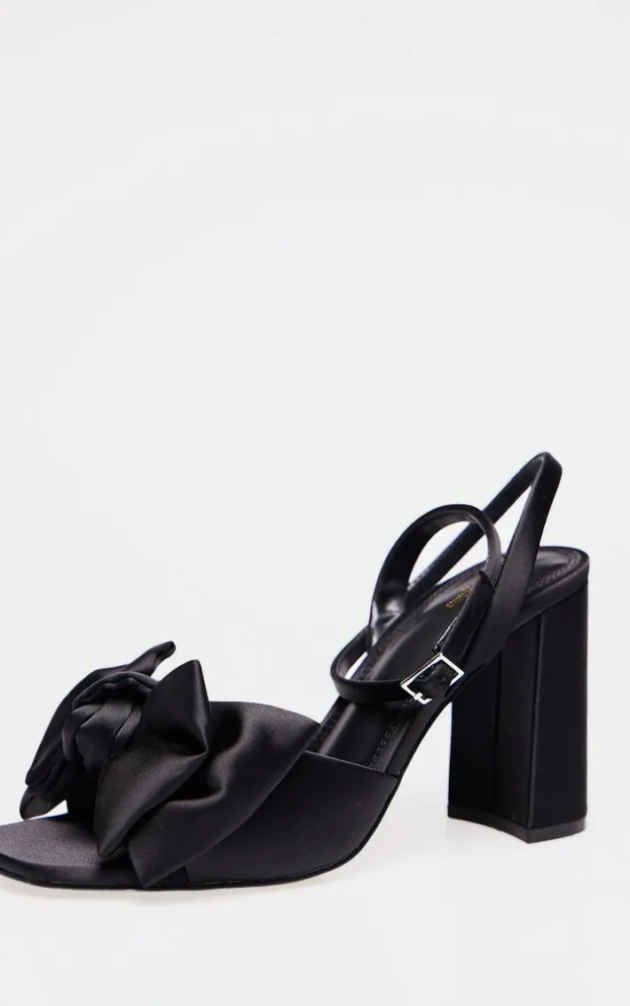Elevate your evening fit with these wide fit black satin round toe bow block heeled sandals. Made form a black hue satin material with a round toe design and bow detail, these block heeled sandals are a must have. What’s not to love? Team with a black skirt, crop top and simple accessories for a look like no other.