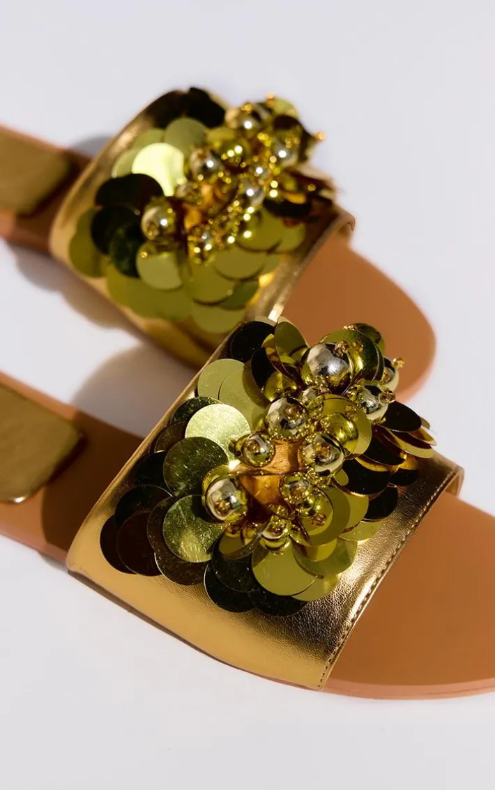 Your outfit of the day won’t be complete without these wide fit gold PU round toe sequin strap mule sandals. Brought to you in a gold PU material with a round toe fit and a sequin strap detail, we are obsessed with these sandals. These unreal wide fit mule sandals are an essential no matter what the occasion. Team these dreamy sandals with your outfit of the day to feel chic this season.