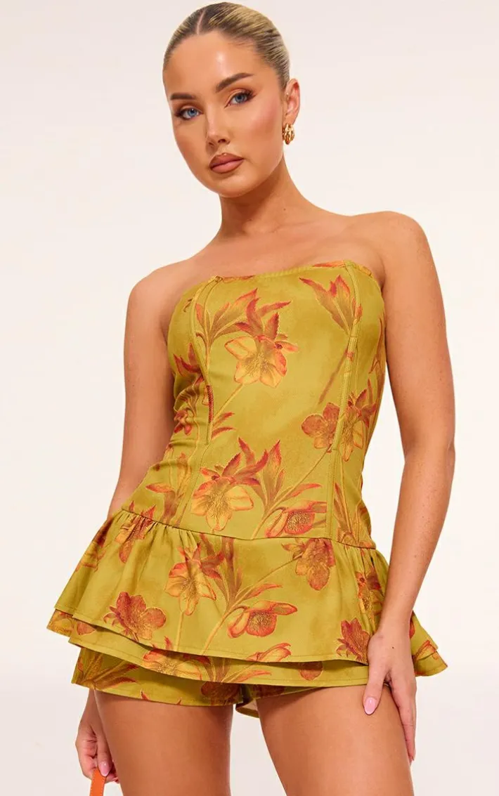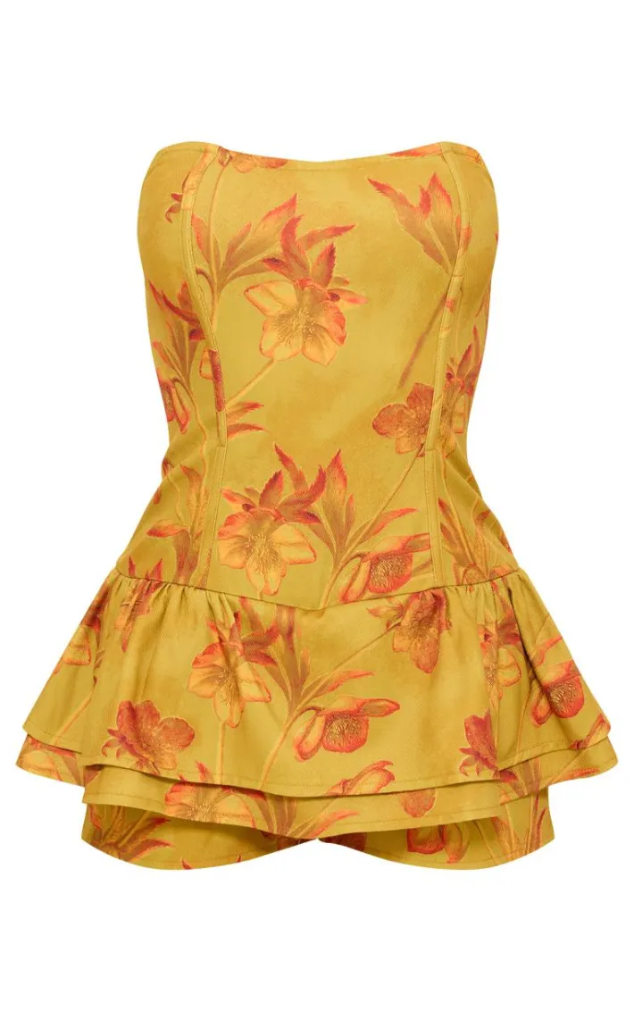 Level up your look with this yellow blossom twill bandeau rara romper. Brought to you in a yellow material with a blossom twill design, what more could you want? This rara romper has a bandeau fit that is sure to get hearts racing, we just can’t get enough. Team with your fave accessories and a pair of heels for a look that will earn you the best dressed title.