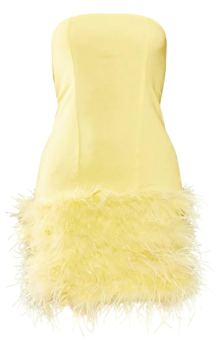 Dare to make a statement this season with this yellow feather detail bandeau bodycon dress, you’re sure to be channelling all the glam vibes. Made using a yellow material with feather detailing and a bandeau style, this bodycon dress will earn you all the compliments. Pair this yellow dress with your fave heels and simple accessories for a dreamy date night look.