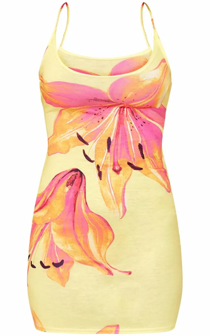 Brighten up your wardrobe with this yellow floral print strappy back bodycon dress. Brought to you in a yellow floral print material with a strappy back detail, this bodycon dress is at the top of our wish list. Style with pink flats and statement earrings for a bold look that won’t miss. It’s a yes from us.
