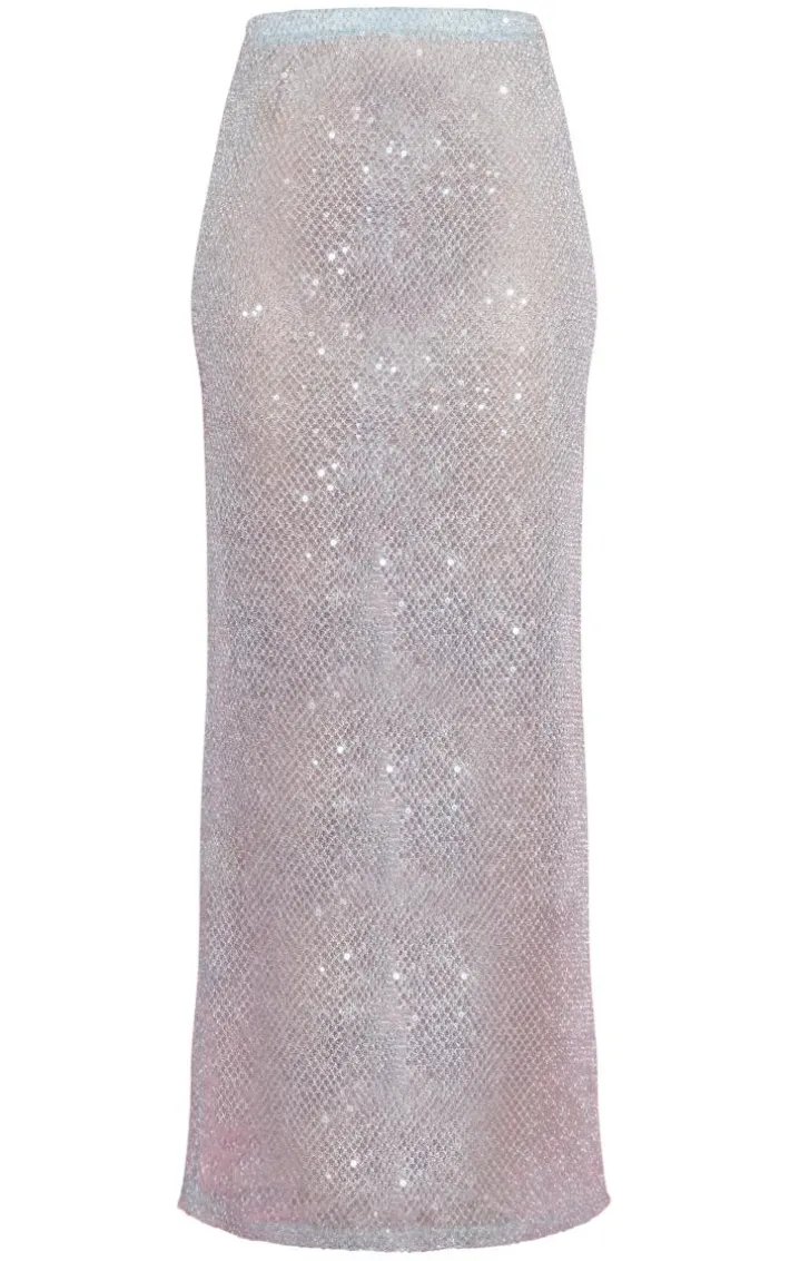 Stand out from the rest with this aqua sheer sequin maxi skirt. Brought to you in an aqua sheer material with a sequin design, you won’t blend in. Its maxi length will have you feeling confident no matter what. Team with a statement top and a pair of heels to elevate the look to new heights.