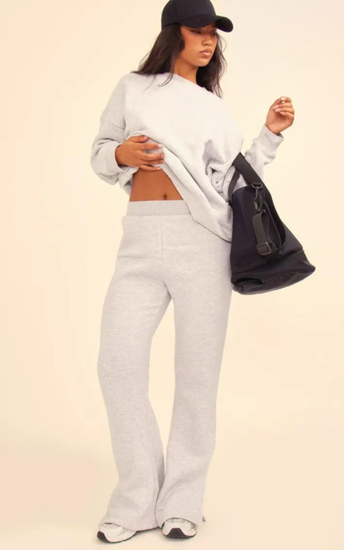 Upgrade your off-duty wardrobe with these ash grey flared split hem sweatpants. Brought to you in an ash grey material with a split hem design, we are obsessed. Its flared fit gives a flattering fit like no other, they’re a definite must-have. Whatever your plans are this season all you need to do is add the matching top and comfy boots.
