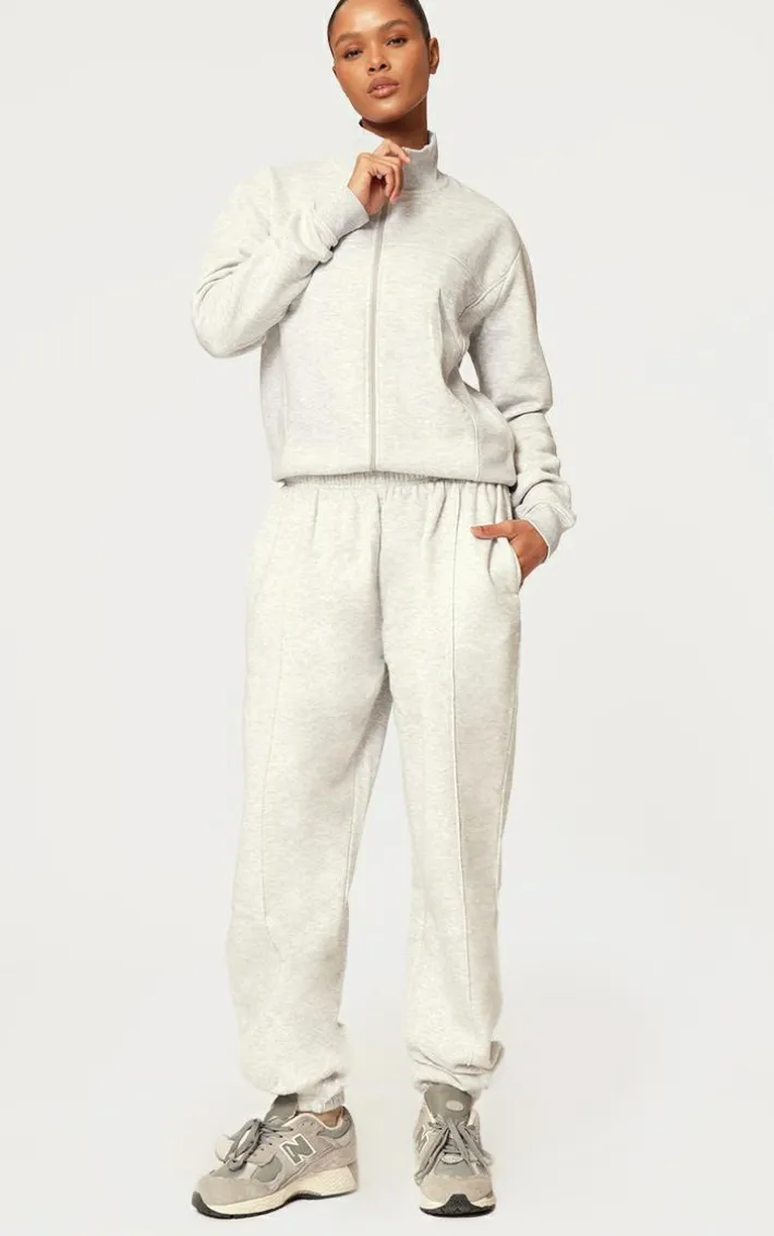 Keep your off-duty style game strong with this ash grey seam detail zip through track top, it’s official, we’re obsessed. This top includes an ash grey material with seam detailing and a zip through design, you’re sure to be adding straight to basket. The oversized design will bring all the comfy but chic vibes to your look. Team with the matching bottoms, box fresh sneakers and your fave accessories for the ultimate chilled day fit.
